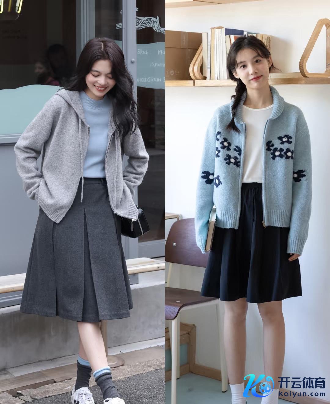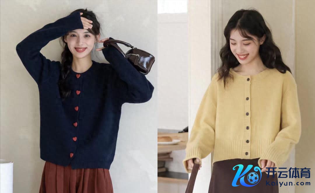 附进色或顺色的搭配,让穿搭更显洋气。纯色真诚开衫或刺绣真诚开衫,皆可自信穿戴。