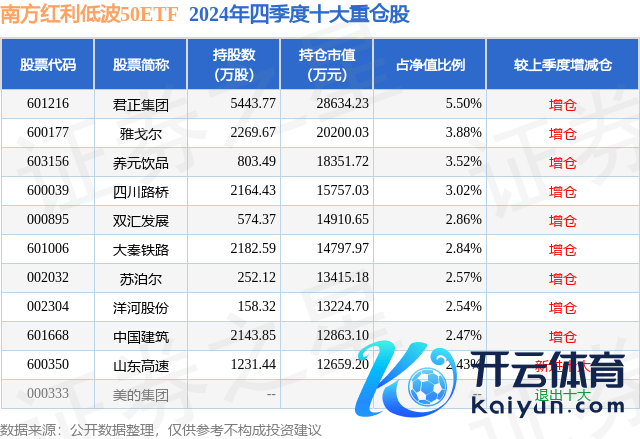 南边红利低波50ETF为指数型-股票基金,把柄最新一期基金季报透露,该基金钞票建树:股票占净值比99.89%,无债券类钞票,现款占净值比0.25%。基金十大重仓股如下: